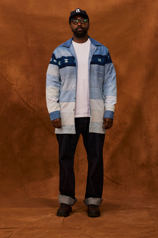 Upcycled Denim and Indigo Rugby Shirt