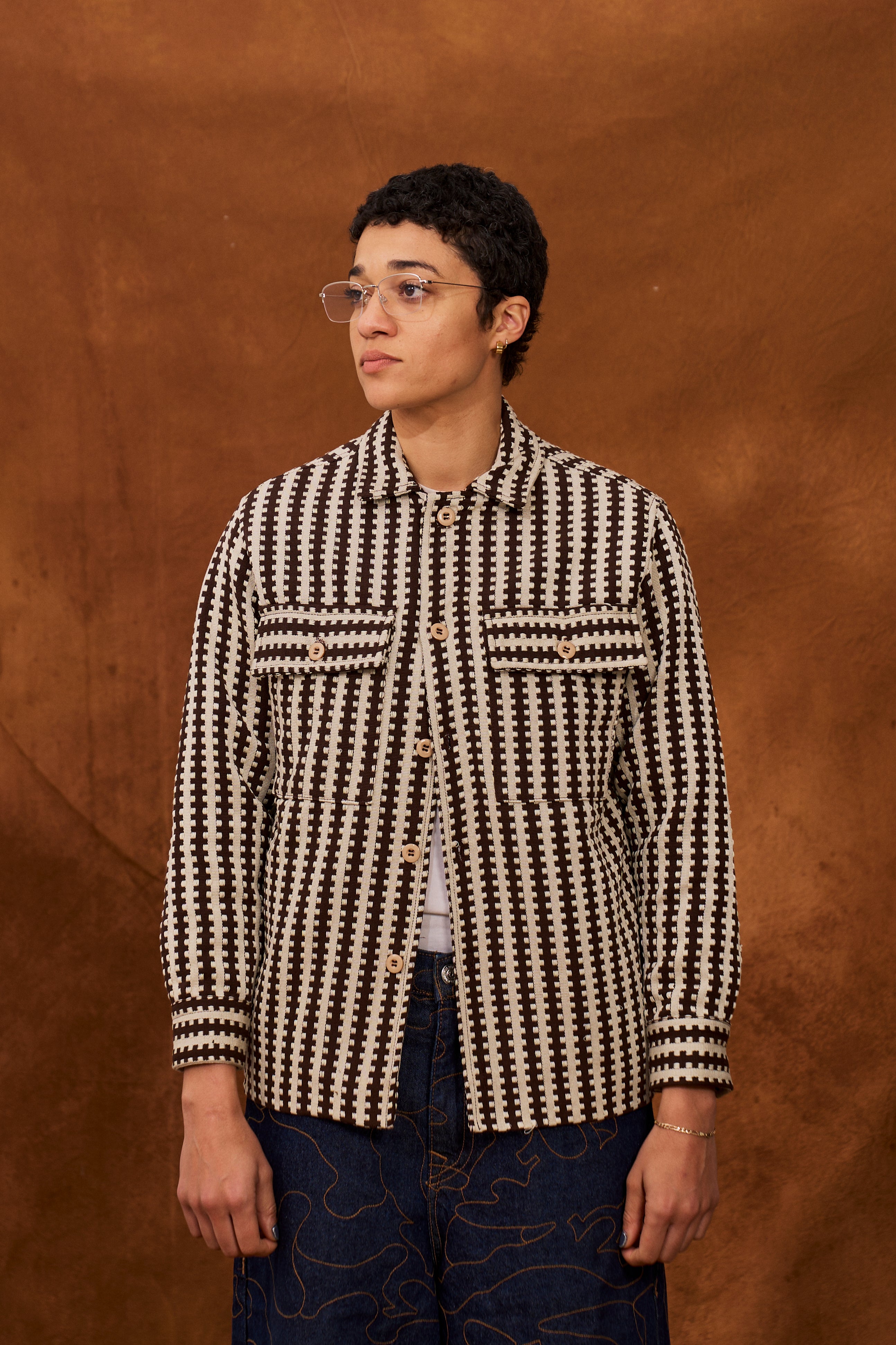 Brown/Beige Woven Overshirt